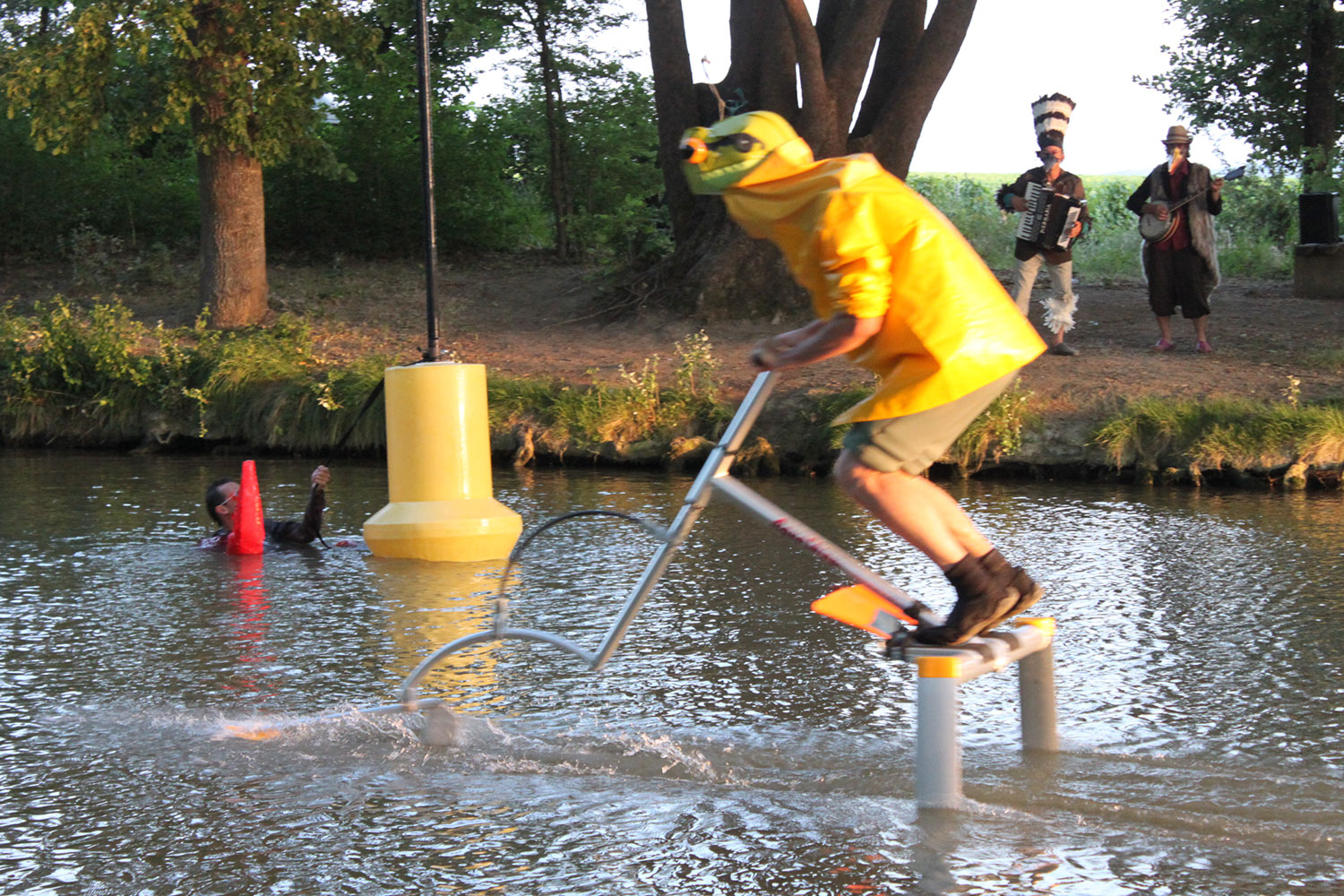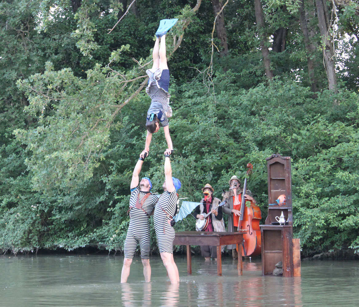 Balad’O é um espectáculo de circo aquático onde os artistas partem em viagem e se transformam pelo caminho.