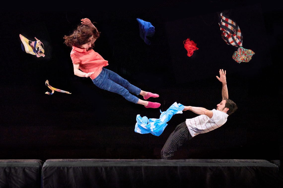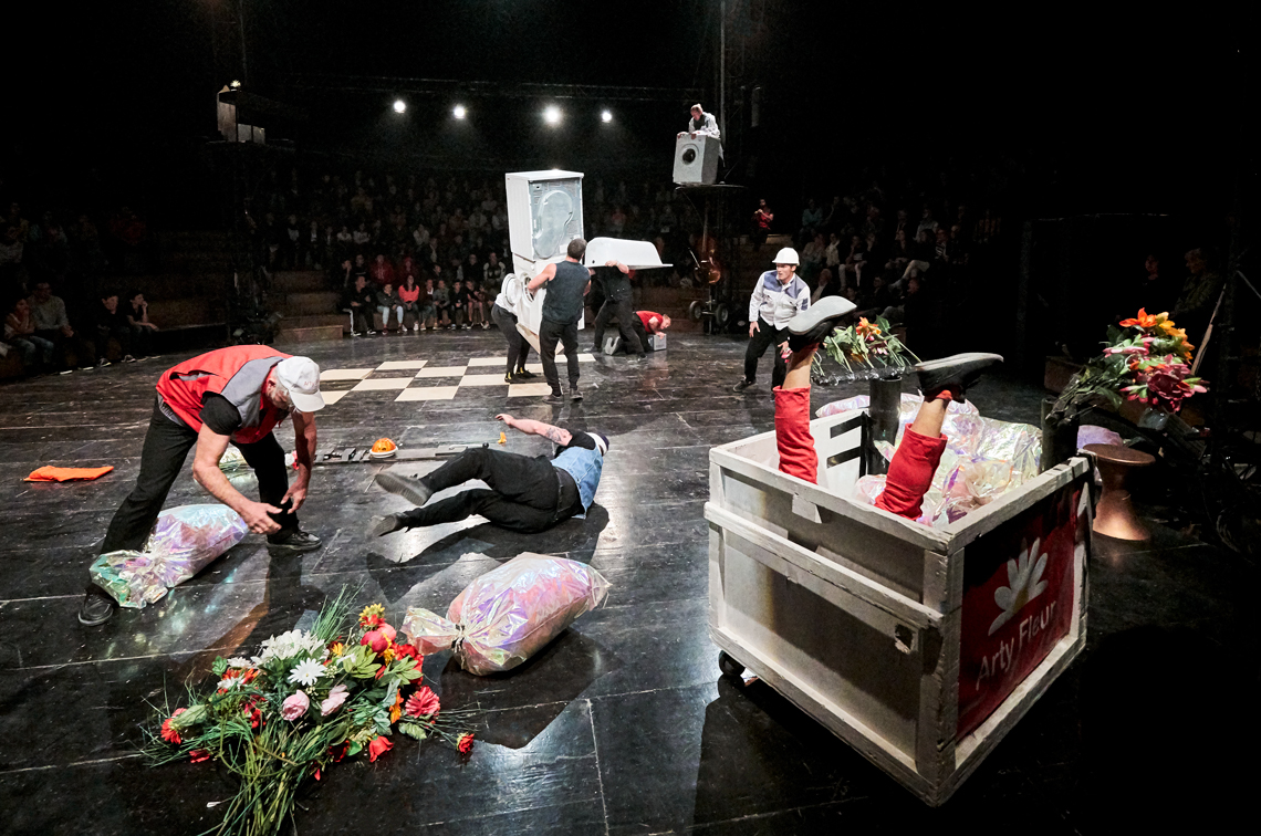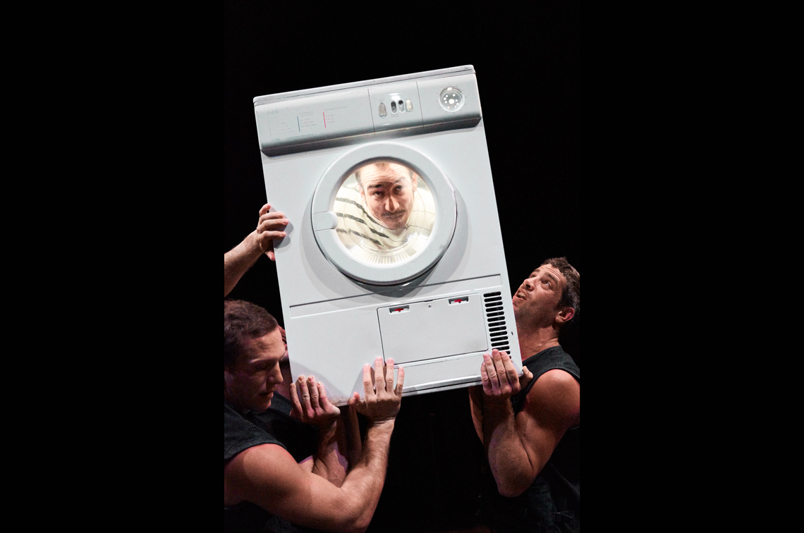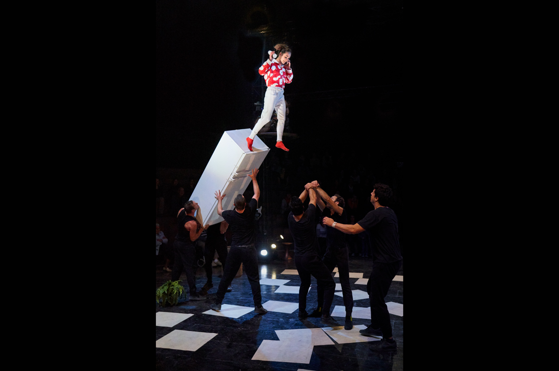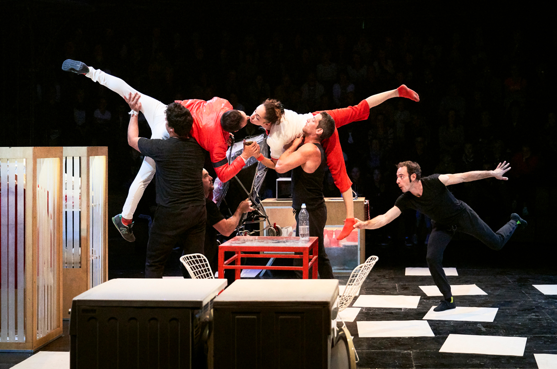 Entre gestos familiares e piruetas estonteantes, os acrobatas entrelaçam os pequenos “nadas” da vida real com habilidades incríveis. Os frigoríficos baloiçam, as máquinas de lavar iluminam-se e os corpos elevam-se numa manifestação espectacular, tumultuosa e doce.