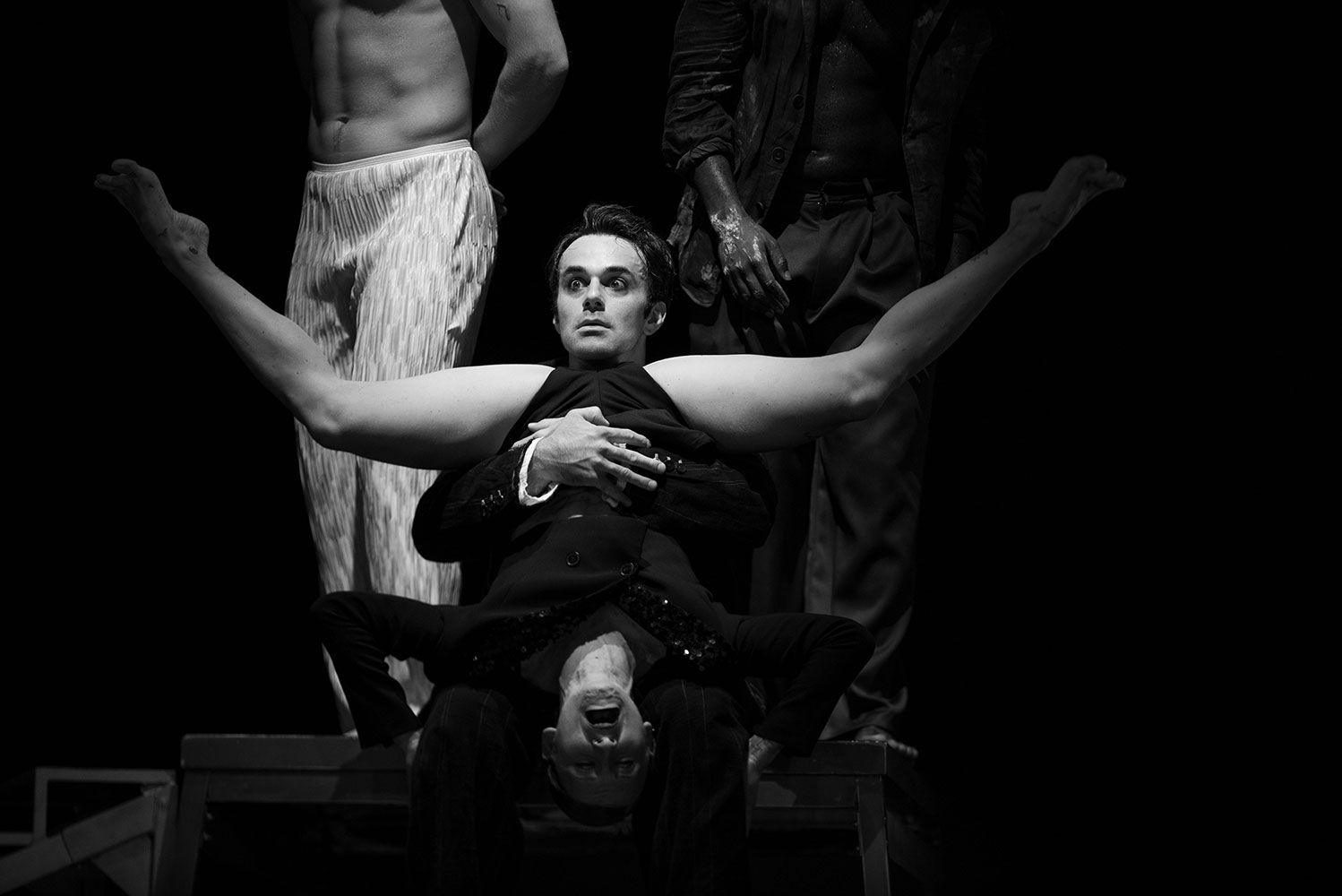MUDA é uma reflexão sobre a natureza multifacetada da condição humana, e explora o trabalho performativo em correlação com a estética do cinema-mudo. O humor entrelaça-se com a tragédia, a fantasia com a realidade, e a violência com o amor. A muda extensão das coisas revela um mundo complexo que nos desafia, como equilibristas no fio da navalha, a transcender os paradoxos da humanidade e a encontrar o ponto de convergência que nos leva à descoberta da beleza.