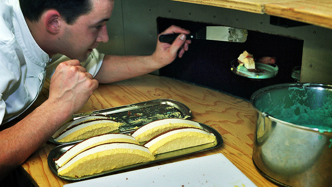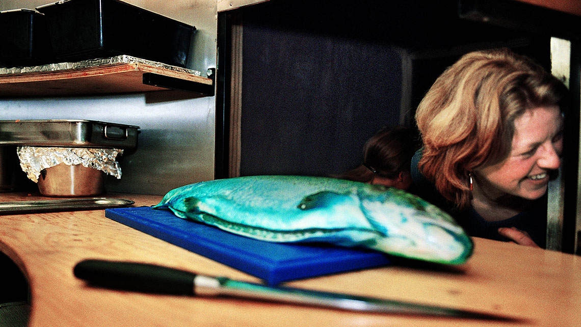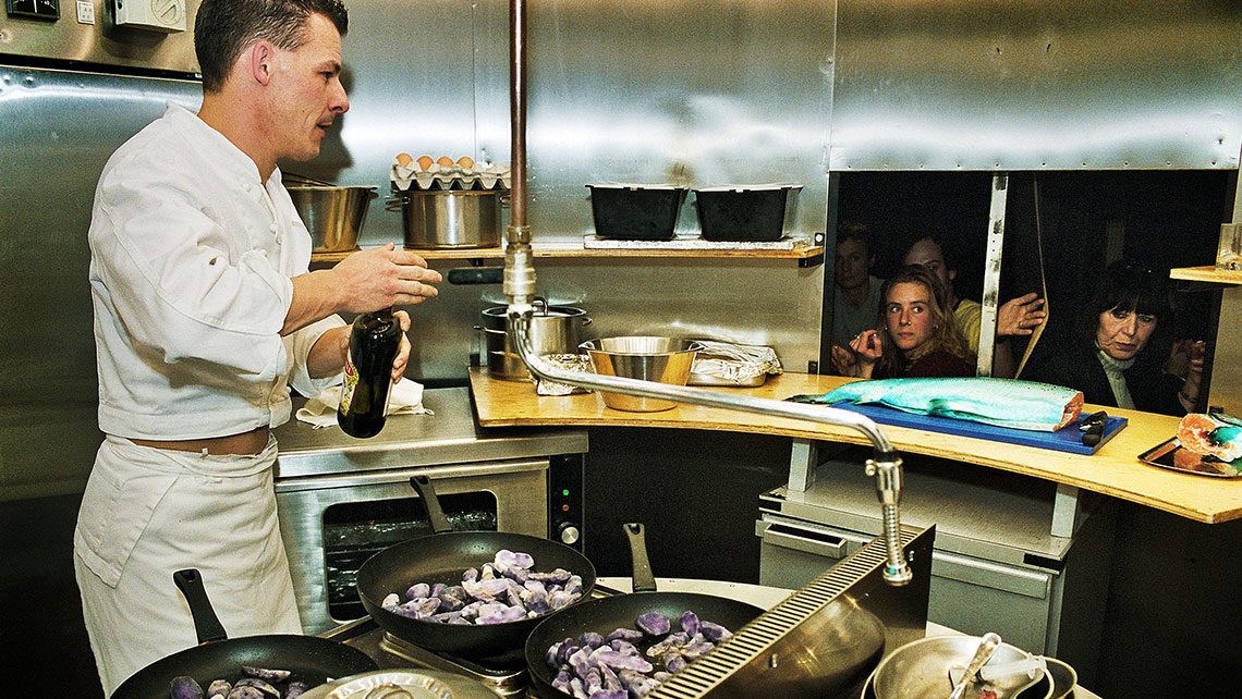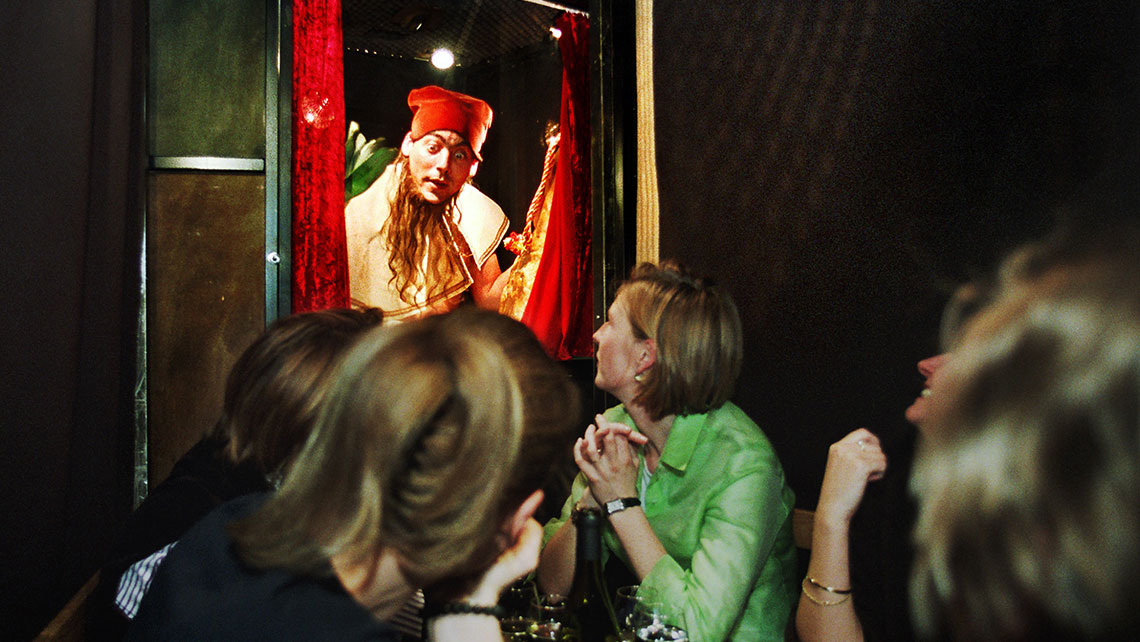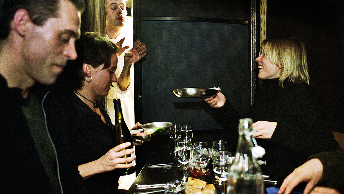 Um restaurante em que os empregados ficam imóveis, e a cozinha roda em torno de si mesma. Enquanto comem, os clientes espreitam para os cozinheiros. Cores inesperadas, ingredientes surpreendentes, actos teatrais e efeitos visuais fundem-se ao insistente ritmo da cozinha giratória e são um convite a todos os sentidos. Peças curtas que saem do forno, que se apresentam numa travessa, que saltam para dentro do prato e que deliciam todos.A Companhia belga LAIKA é especializada em aliar a Gastronomia ao Teatro. Com um vasto reportório de espectáculos que têm sido aclamados em toda a Europa, o o seu trabalho destaca-se pela capacidade de colocar a ficção teatral “no prato”. O campo da comida surge como a matéria teatral com a qual se criam espectáculos divertidos, saborosos e inesquecíveis. Peter de Bie, o encenador/cozinheiro e director da companhia, vai visitar os mundos da tradição da Batata-Doce, do medronho, do mel, do amendoim, dos enchidos e do peixe. Dentro de uma tenda, disposto em intimistas salas de espreitar e comer para somente 5 pessoas, o público saboreia pequenos espectáculos em sequência.